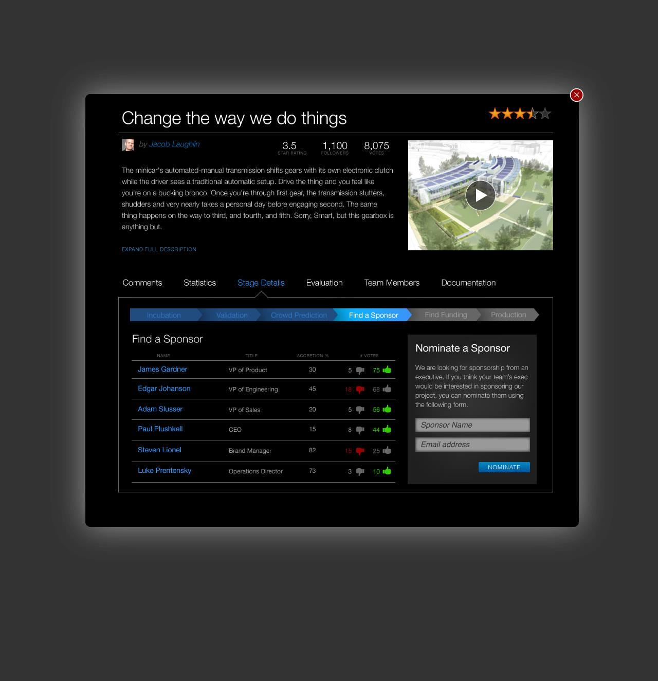 Conceptual design for Spigit Innovation SaaS product.