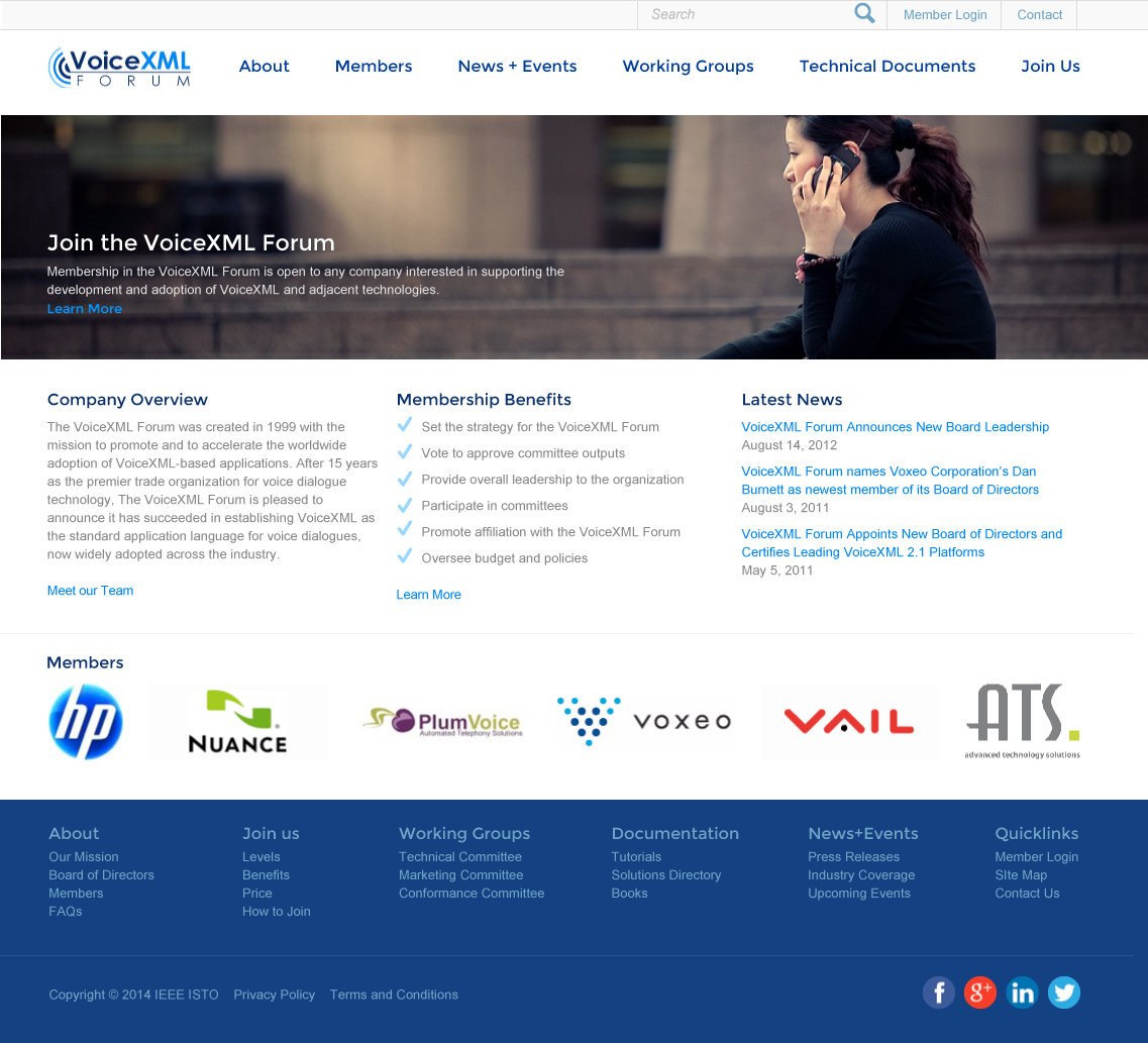 Migrated the VoiceXML Forum website from a drupal site to a custom WordPress template. Designed, conceptualized and oversaw the delivery of the new website.